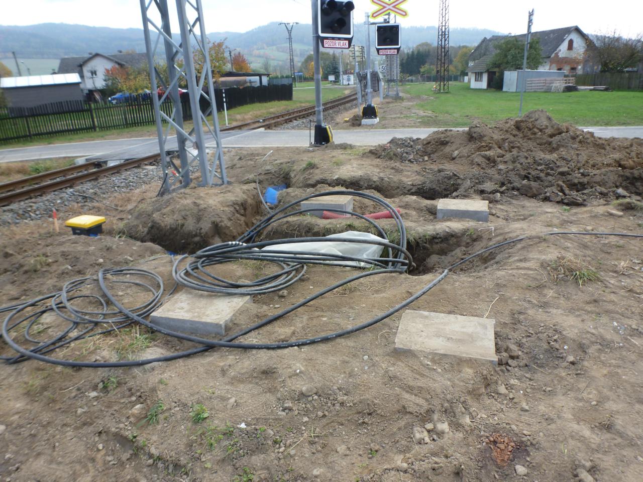 Provedena venkovní kabelizace. Kabely pro venkovní prvky jsou nové, plněné. Vzhledem k elektrizaci tratě soustavou 3kV ss jsou použity kabely párované typu TCEPKPFLEZE. K závorovým pohonům jsou použity kabely typu CYKCY. Kabely k venkovním prvkům jsou na straně RD ukončeny v reléovém stojanu.